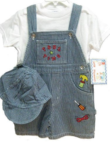 SKU: 126002 Toddler Boys Sizes 2T/3T/4T Indigo Denim/Stripe Denim Shortall 2-PC Sets with Cap