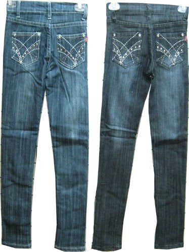 SKU: SK716010 Girls Sizes 7/8/10/12/14 Stretchable Denim 5 Pockets Embroidered Jeans. Skinny Cut.